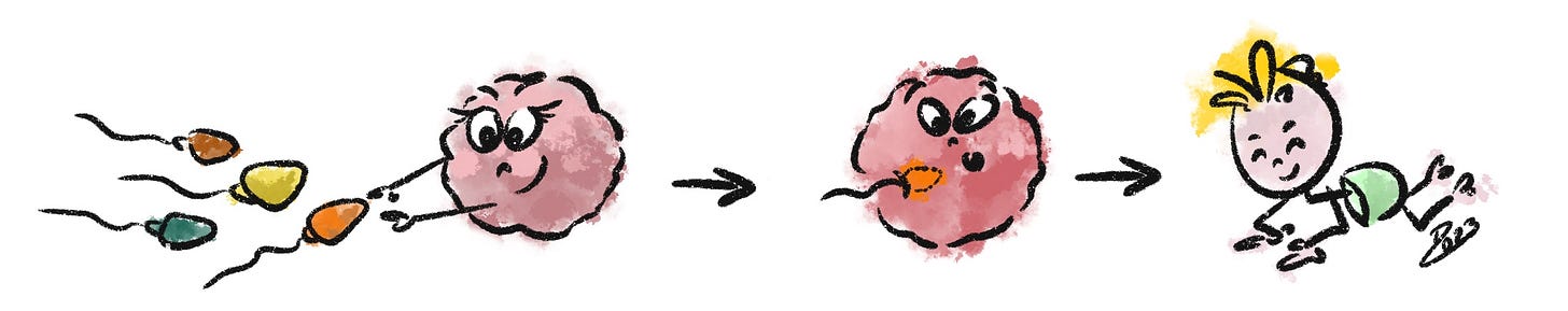 Yes, newest research shows that it’s the egg that chooses the sperm. Either way, my mom picked a sperm that made me, me, the girl Daria with two X-chromosomes :-).