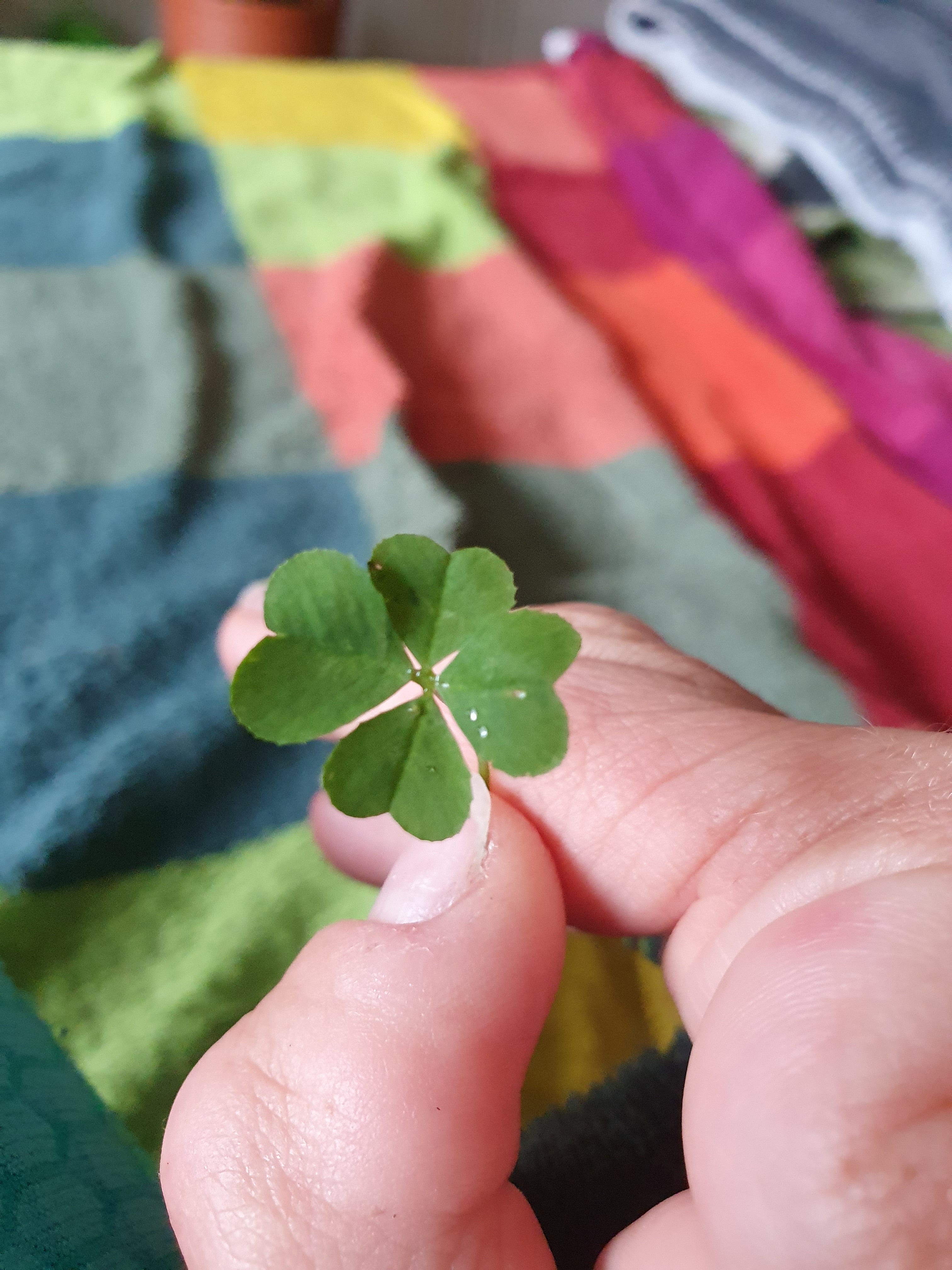 “…well, I might as well check the grass & the cloves for a four-leaf-ed one, maybe I will finally find one!”