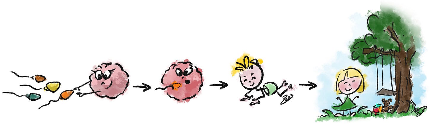 Lets get back to basic reproductive biology: a mans sperm fertilizes the womans egg and upon successful fertilization, the woman gets pregnant and creates a whole human being in her own body within 9 months. After giving birth, she is still the main nurturer of the baby, feeding it so it thrives and survives.